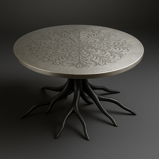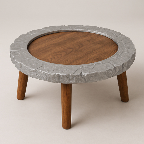 TEXTURED METAL AND WOOD COFFEE TABLE